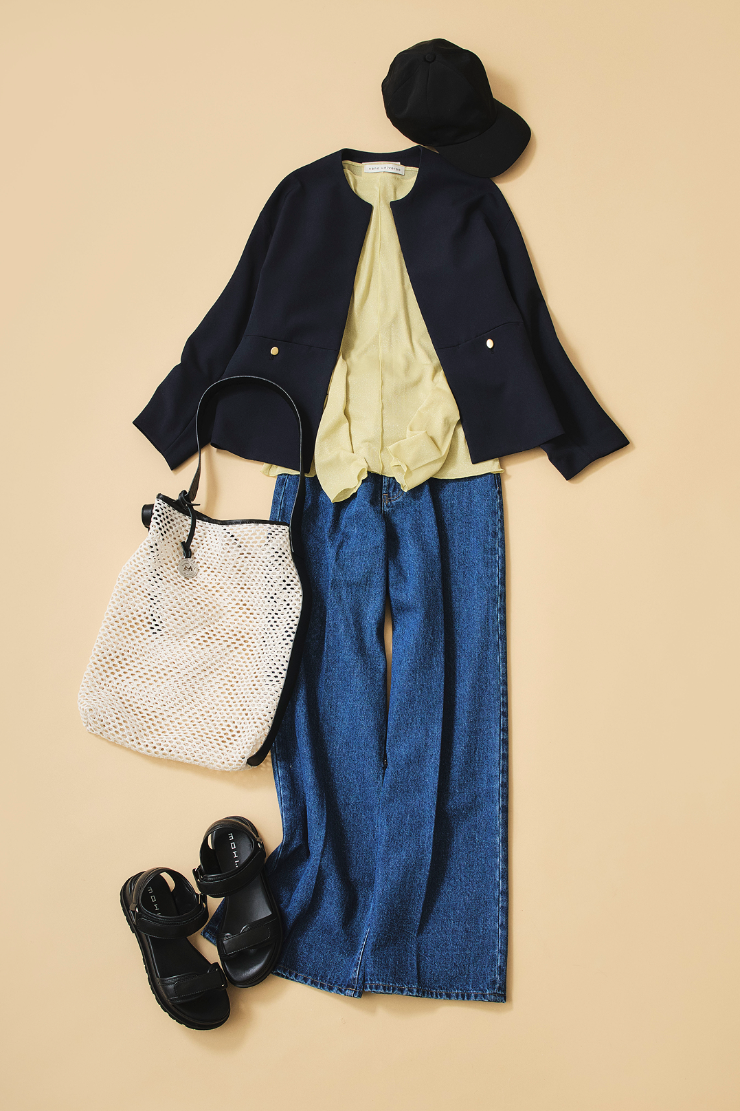 タイムレスに愛せる、ネイビーのノーカラージャケット