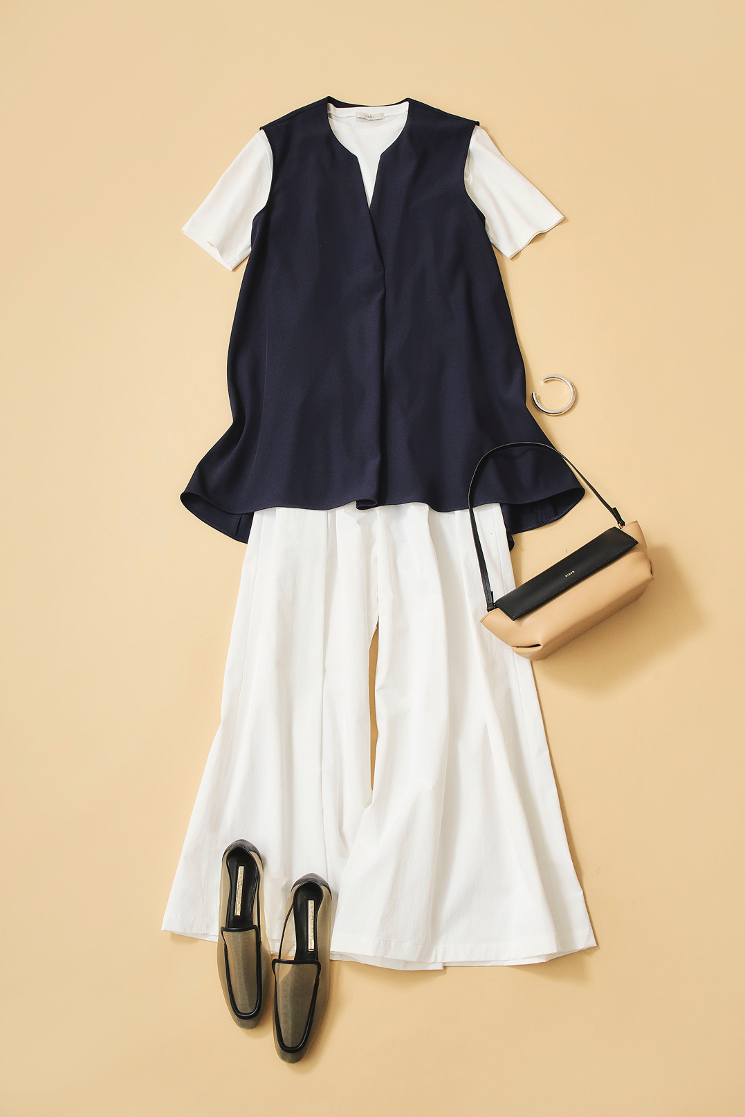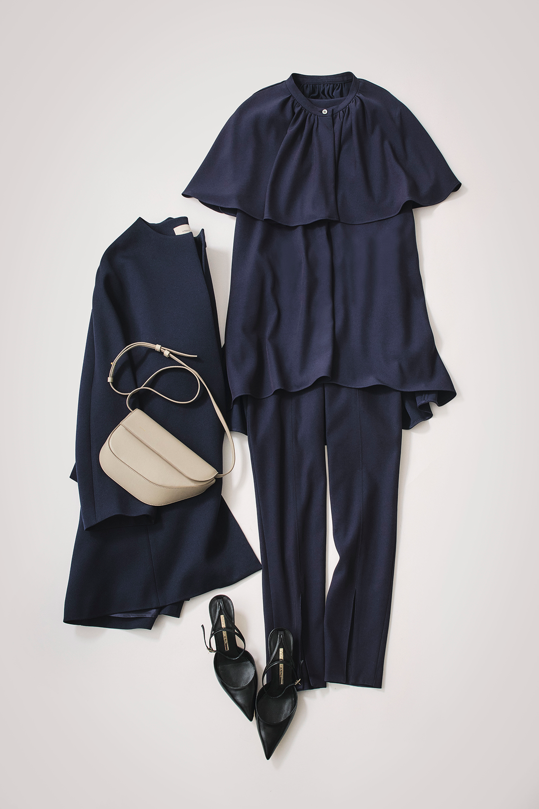 モードな表情へと誘う、ネイビーの2WAYブラウス