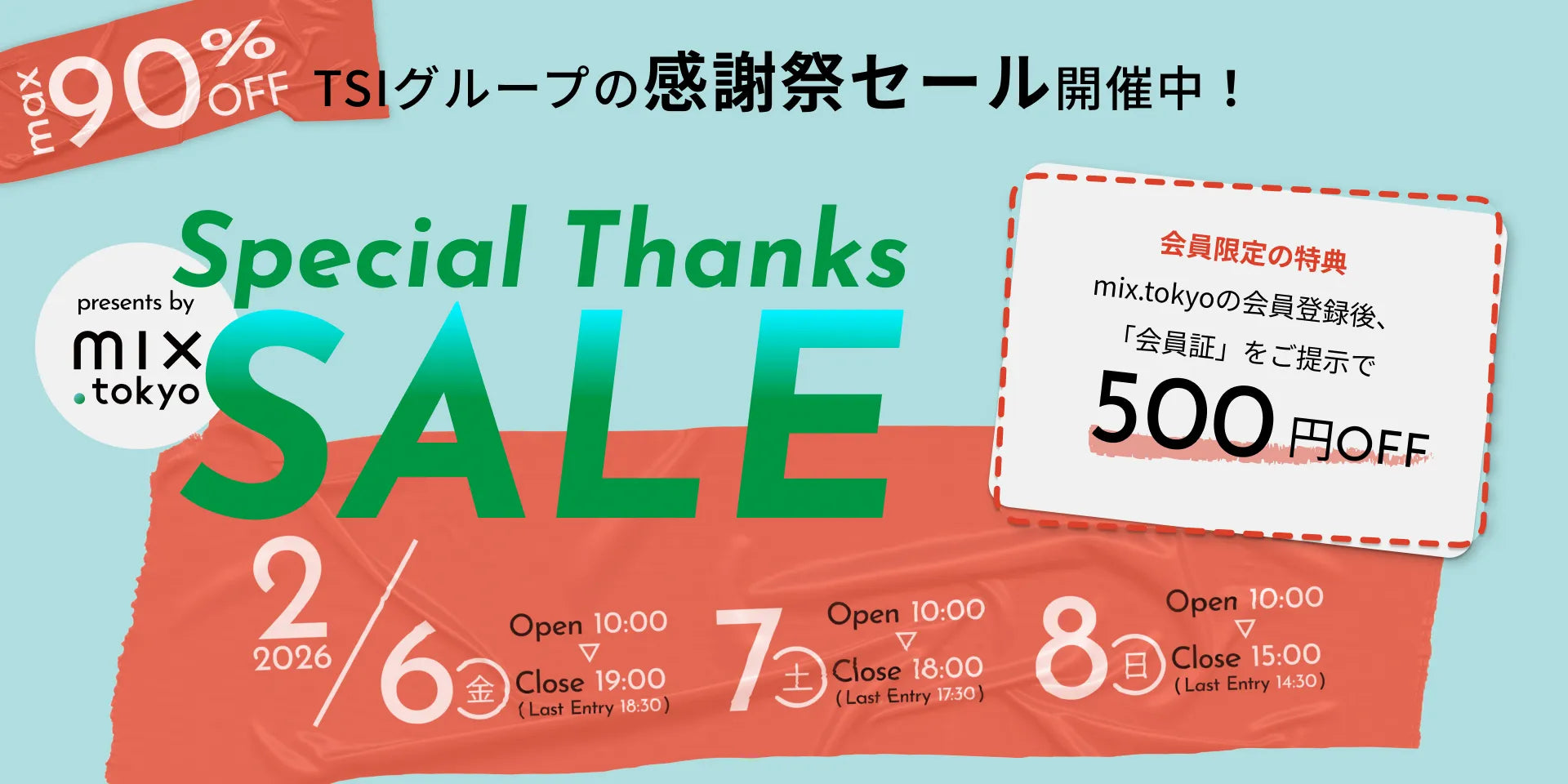 mix.tokyoの会員登録後レジで「会員証」をご提示でさらに500円OFFに!