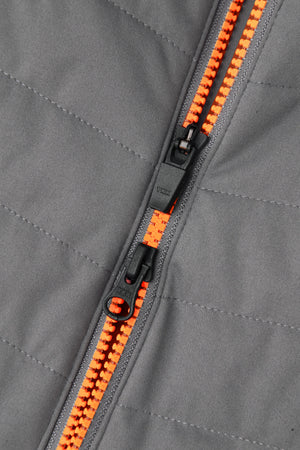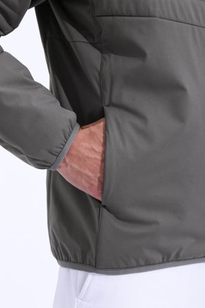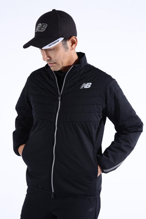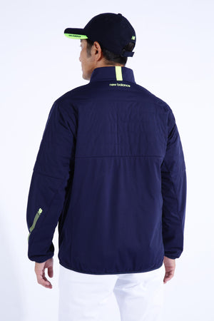 程よいボリュームで見た目も着心地も温かいフルジップブルゾンです。再生ポリエステルを素材の一部に使用した中綿素材「サーモライトエコメイド」を封入し、確かな保温性を確保しています。また、優れたストレッチ性を持つ生地にラミネーションを施すことで、撥水性・防風性も付加し、あらゆる場面に対応する理想的な機能アイテムに仕上がりました。アクセントカラーをポイントにした、こだわりのデザイン。ゴルフだけでなくアウトドアやタウンなど幅広く使える、寒い季節にオススメの一着です。