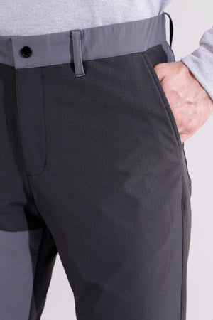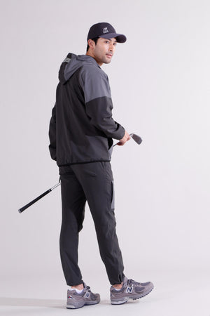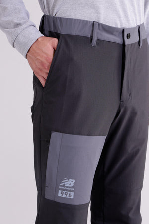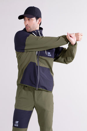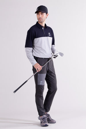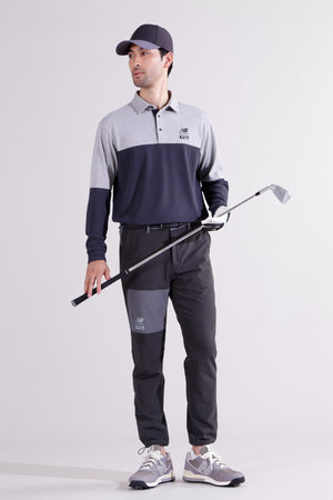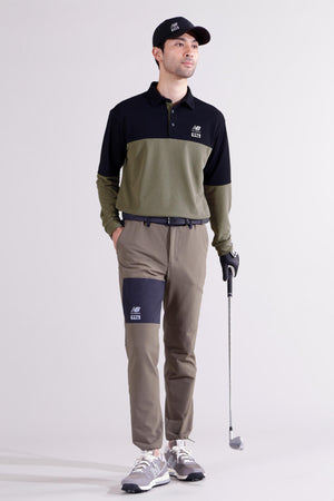 雨風などの悪天候でも快適な着心地をキープするジョガーパンツです。柔らかく伸縮性に富んだ4WAYストレッチ素材に、撥水性、透湿性を付加。また、防シワ性やマシンウォッシャブルを兼ね備えたイージーケアも嬉しいポイントです。さらに裏地は微起毛がかかっている為肌触り良く、秋から冬まで快適にゴルフプレーを楽しめるようサポートします。ウエストと裾にはドロストを施しお好みのフィット感に調節出来ます。リップストップで切り替えた配色がアクセントになったハイブリッドデザイン。35周年を迎えるゴルフシューズ「996」からインスパイアした、カラーブロックとロゴを取り入れたスタイリッシュなアイテムです。
