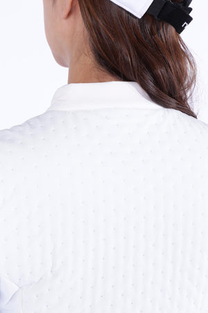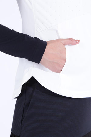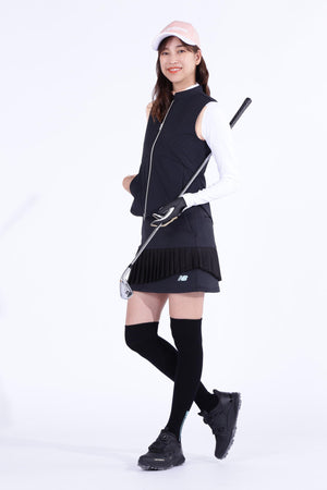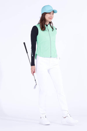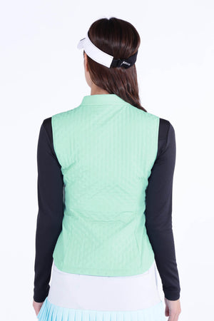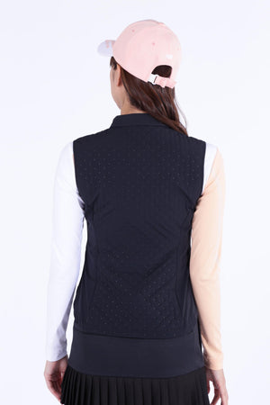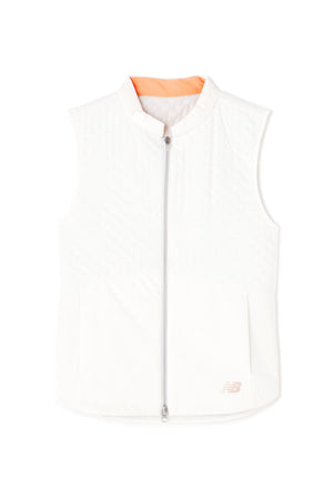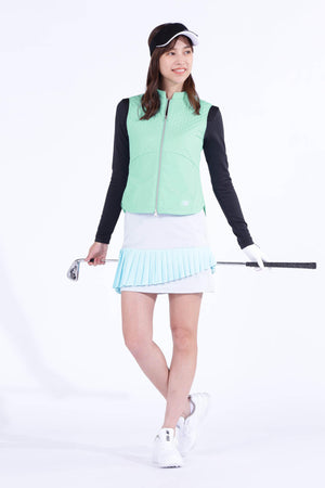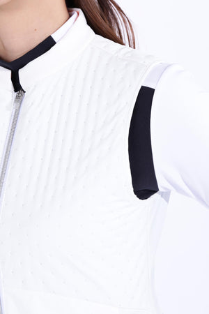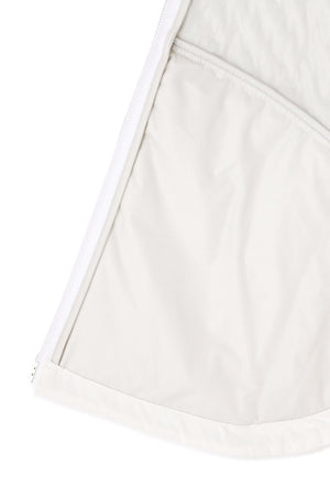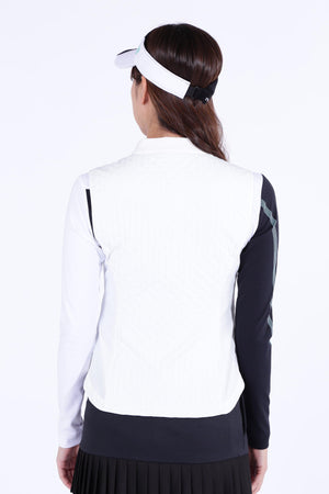 防寒性に優れた中綿入りフルジップベストです。ペットボトルなどからリサイクルした再生ポリエステルを生地の一部に使用した中綿素材「THERMOLITE EcoMade」を採用。軽量保温性や通気性、撥水性、嵩高さと柔らかさを実現しながら、環境へのインパクト削減にも貢献しています。また、超音波で綺麗に柄を出すピンソニックキルトにすることで、ストレッチ性・防風性もあり秋冬のスポーツシーンも快適に着用いただけます。着膨れしないスッキリとしたフォルムが特徴でレイヤードもしやすくなっています。カラーは、合わせるアイテムを選ばない使い勝手抜群のブラック・ホワイトと甘さと爽やかさを感じさせるブルーをご用意しました。