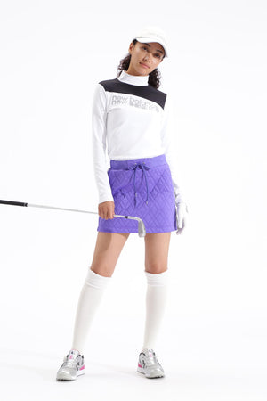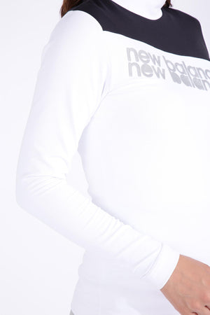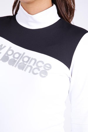 大胆な斜め配色切替えデザインが目を惹く長袖モックネックプルオーバーです。柔らかく伸縮性に富んだベアスムース仕立て。光沢を抑えるセミダル加工したポリエステル素材「SOFT WINTER」を使用しており、紫外線防止率99%以上の効果を発揮しつつ、高い吸汗速乾性能が肌のドライ感を保ちます。また、特殊な後加工が施された膨らみ感・軽量感のある素材です。肌に当たる内側は裏起毛で保温性が高く、着心地も見た目と同様にとてもソフトに仕上がりました。デザインを変えたラメロゴが遊び心を感じさせるアクセントに。落ち着きのあるバイカラーデザインは幅広いコーデにマッチし、スタイリングをスタイリッシュに演出します。