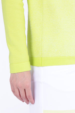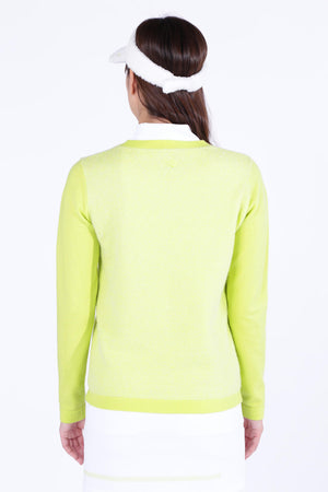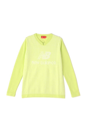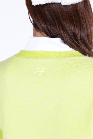 フェザー切替えがフェミニンな印象を与えるクルーネックプルオーバーです。遠赤外線を放射する特殊セラミックを繊維に練り込んだアクリル素材「ダイナホット」を採用。ソフトな風合いで心地良く、1枚でもしっかり暖かい蓄熱保温性を兼ね備えています。また、抗ピリング性により毛玉ができにくくなっているのも嬉しいポイント。今期は更に糸段階でのストレッチ性をプラスしており、どんな動きもスムーズに行えます。ロゴをアクセントにした身頃をフェザーヤーンニットに切り替えることでスポーティーになりすぎず、柔らかく優しい雰囲気に仕上げました。
