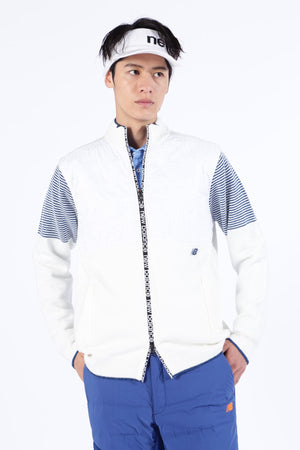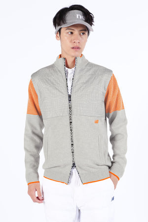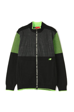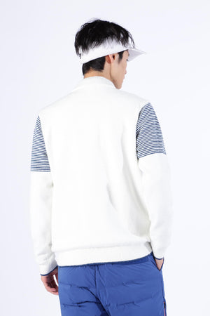 ボーダー×スパイダーウェブ 蓄熱保温 フルジップ ニット ブルゾン (MENS SPORT)