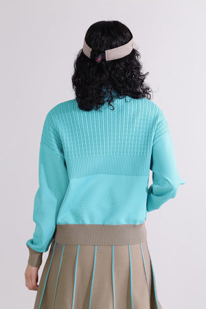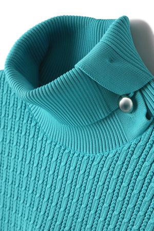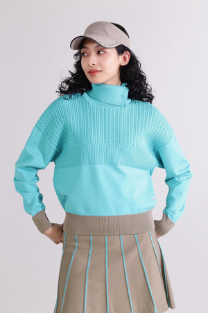 凹凸を大きく表現し表情豊かに仕上げたニットプルオーバーです。ウォーム感あるアランジャカード×リブ×プレーンニッティングを組み合わせ、新鮮な着こなしに導いてくれるファッション性の高いデザインです。廃棄予定の衣料品などを回収し、新たな繊維に生まれ変わった「RENU」素材を使用。水を使用せず省エネで作られた原着ポリエステル糸で、日光や摩擦による退色を抑えられる魅力を持っています。同シリーズのニットスカートと合わせた配色切替えもポイント。大きなボタンが付いたタートルネックが大人可愛いこなれた雰囲気をプラスしてくれます。