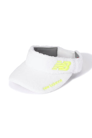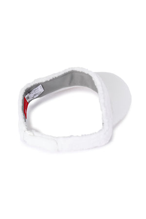 モコモコ素材がシーズンムードを盛り上げるバイザーです。優しい雰囲気のパステルカラーをポイントに、ロゴを施し大人可愛いスポーティーなデザインに仕上げています。すべり部分には汗をかいてもドライな質感を保つ吸汗速乾性に優れた「COOLMAX」素材を採用。また、後ろに配置したベルクロ仕様のアジャスターで簡単にサイズ調節が出来ます。スタイリングに馴染みやすいロゴデザインとカラーリングで様々なシーンに重宝する万能アイテム。温かみのある心地良い肌触りで、これからの季節に活躍すること間違いなしです。