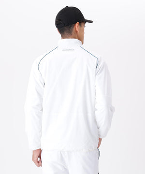 軽やかで温かいフルジップブルゾン。高いストレッチ性と防風性を兼ね備えたタフタ生地が、冷たい風をシャットアウトしながらスイング時の動きやすさをサポートします。また軽量かつ革新的な暖かさと通気性を提供する特殊裏地「ThermoMesh」を採用。表面のメッシュ構造が滑らかな肌触りを実現し、裏面の起毛技術により保温性を確保しています。さらに撥水性があり多少の雨や雪にもしっかり対応する、多様なコンディションに頼れる一着です。アップサイドダウンロゴのボーダーエンボス加工×ソリッドの切替えデザインが、ブランドらしいモダンなスポーティーさを演出します。