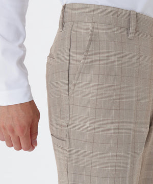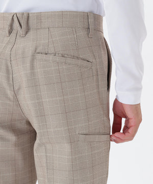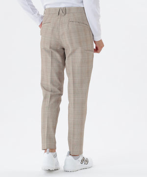クラシックな表情と快適さを兼ね備えたロングパンツ。ストレッチ性に優れた先染グレンチェック柄を採用。再生ポリエステルを用いたサステナブルな素材使いで環境にも配慮しています。ワイドなシルエットにテーパードラインを効かせることで、程よくリラックス感がありながらも足元はスッキリと見えるデザインに。ジャストレングス仕様でバランス良く穿きこなせ、上品なチェック柄がスタイルに洗練された印象をプラスします。