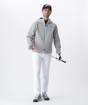 しなやかで動きやすいロングパンツ。裏起毛仕様で温かく、肌触りも快適。ストレッチ性に優れており、スイングやしゃがみ動作など、プレー中の動きをスムーズにサポート。環境に配慮した再生ポリエステルを素材の一部に採用し、サステナブルな一本に仕上げました。ジャストレングスでスッキリとした印象を演出。ウエスト部分のロゴがスポーティーなアクセントとなり、スタイリッシュなゴルフスタイルを引き立てます。