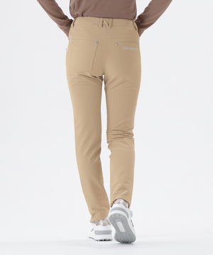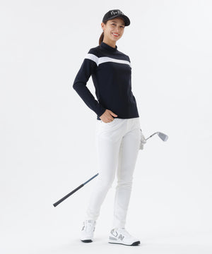 高い伸縮性を誇る4WAYストレッチ素材と、軽やかで快適なソフトシェル構造を採用したロングパンツ。スリムなシルエットでラインを美しく見せつつも、締め付け感がなく、動きを妨げない抜群の着用感を実現。撥水性に優れる「メモリッチシールド」が急な悪天候にもしっかり対応します。カラーはスタイリッシュなブラック・ホワイトに加えて、柔らかなベージュとフェミニンなピンクを含む全4色を展開。凛とした美しさと機能性を両立した、アクティブな女性ゴルファーの為の一着です。