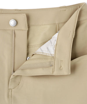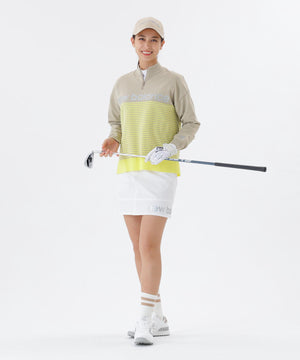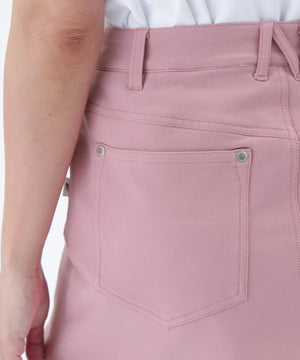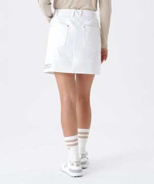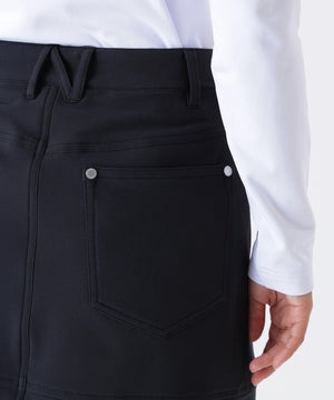動きやすさに加えて天候変化にも対応するスカート。しなやかさとハリ感を併せ持つソフトシェル素材を使用し、軽やかな着心地とスタイリッシュなシルエットを両立しました。プレー中のあらゆる動きにフィットする4WAYストレッチ仕様でスイングや屈伸もスムーズ。さらに撥水加工を施しており、急な雨にもしっかり対応します。ポケットは4つ。シルバーロゴが品を放つアクセントに。アクティブなゴルフスタイルをより快適に、よりスタイリッシュに演出します。