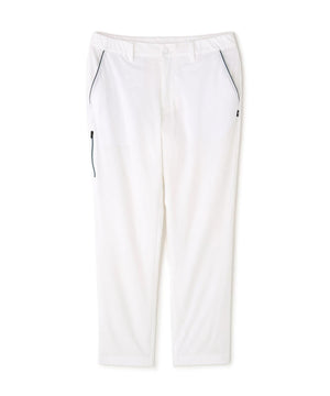 寒さ対策も動きやすさも両立したロングパンツ。上品な光沢とマットな質感が特徴のタフタ素材を使用。裏面にはコーティングを施し、優れた撥水性を発揮。適度なストレッチ性により、スイングや屈伸などの動きにもスムーズに対応します。さらに裏地には保温性と通気性を両立した高機能素材「サーモメッシュ」を採用し、起毛技術により寒さをしっかり防ぎながらも、蒸れを抑えて快適な着用感を持続します。無駄のないスマートラインで軽快なフィーリングを実現。スタイルと機能の両立を叶えるアイテムで、アクティブなメンズゴルファーに最適です。