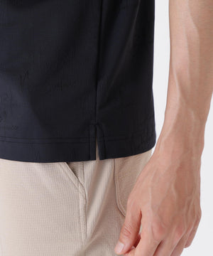 ジャガード織ならではの凹凸柄が際立つ上品な半袖ポロシャツ。シグネチャーモノグラム柄を凹凸感で全面に表現し、さりげなくも印象的な存在感を放ちブランドらしさが際立っています。シルエットはリラックスフィットで身体を締め付けず自然な動きをサポート。さらにストレッチ素材を採用している為、日常からゴルフ等のスポーツまであらゆる動きに対応し、動きやすさと快適性を両立しています。UVカット機能を備えている為紫外線対策も万全です。カラーはブラック・ホワイト・イエローを揃え、洗練された印象を演出します。