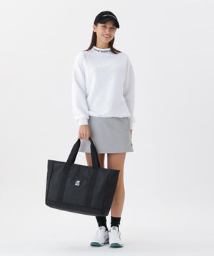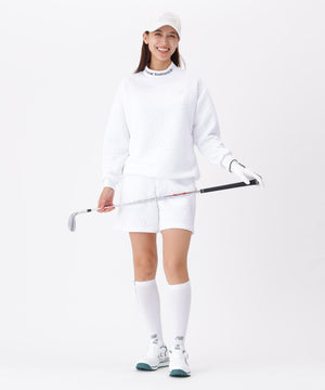 質感で魅せるモックネックプルオーバー。立体的なキルトジャガード素材に浮かぶフローティングロゴが印象的。柔らかく伸びるストレッチ性を備え、見た目の存在感と快適な着心地を両立しました。素材には環境に配慮した再生ポリエステルを採用し、肌寒い時に頼れる程よい厚みのあるアイテムです。首元のロゴが控えめながらもアクセントに。ゆとりあるリラックスシルエットで窮屈感のない楽な着用感を叶え、抜け感あるスタイルを演出します。