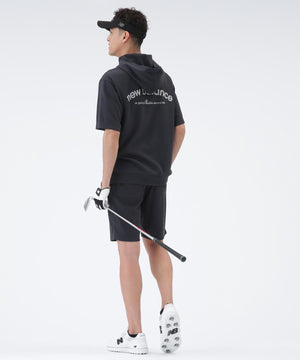 吸汗速乾性 抗ピル ストレッチ UV ハーフスリーブ スウェット プルオーバー フーディー (MENS)