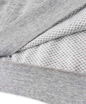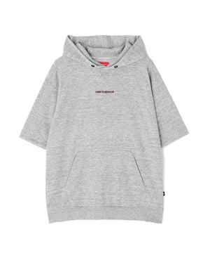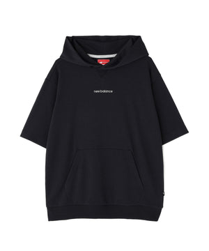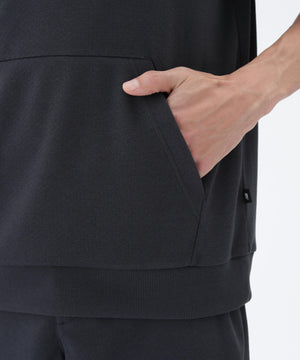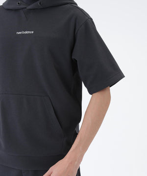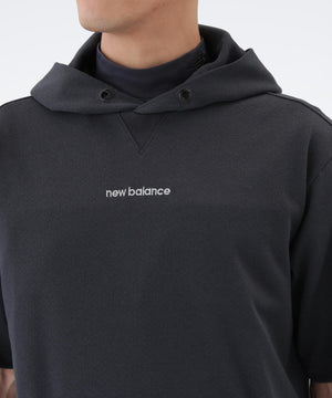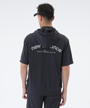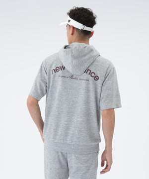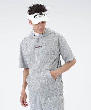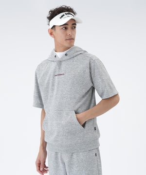 リラックス感のあるシルエットに機能性を兼ね備えて快適性を高めたハーフスリーブプルオーバーフーディー。ニュアンスある表情をしたメランジ調の天竺素材を使用し、裏面にハニカム構造を採用することで通気性と肌離れの良さを両立。吸汗速乾性が特徴の「DRYMIX」が汗ばむ季節でも快適な着心地をキープします。さらに紫外線対策に嬉しいUVカット、アクティブな動きを妨げないストレッチ性、毛玉が出来にくい抗ピル性を持ったイージーケアなど機能性抜群です。前後にロゴを配置し、シンプルながらもスポーティー感あるお洒落なデザインに仕上がっています。