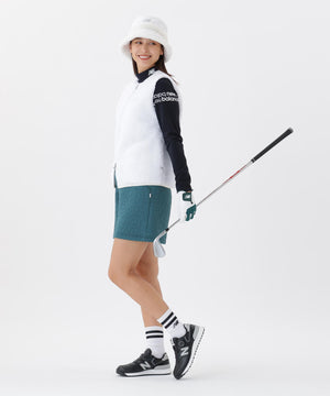 しなやかで優しい肌触りのベア天竺裏フリース素材を使用した長袖モックネックプルオーバー。内側のフリースがふんわりとした温もりで身体を包み込みます。軽やかで柔らかい着心地ながら、優れたストレッチ性で活発な動きにもスムーズに対応。さらに太陽光を吸収して熱へと変換する高機能素材「サーモソーラー」を搭載し、自然な発熱効果で、冷え込む季節のラウンドでも快適な暖かさを提供します。優しい色合いにシルバーのロゴが程よく主張し、スポーティーさと女性らしさを両立。身体のラインを綺麗に魅せるスッキリとしたシルエットで、レイヤードにも適しています。