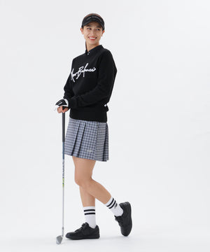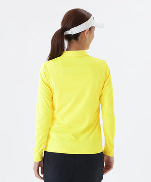 大人のゴルフスタイルを品よく彩る長袖カラーシャツ。さりげなくブランドらしさを表現したシグネチャーモノグラムジャガード素材は、無地ライクに見える控えめな表情が特徴です。サラリと快適な着心地を叶えるストレッチ性に加え、日差し対策にも嬉しいUVカット機能付きでラウンド中も安心。フロントはボタンが隠れるデザインでスッキリとしたミニマルな印象に仕上げました。また配色ロゴでアクセントをプラス。上品で落ち着きのある印象を保ちつつ、近くで見ると繊細な柄が光るハイセンスデザインが魅力です。