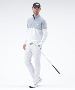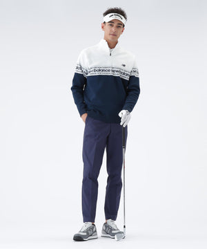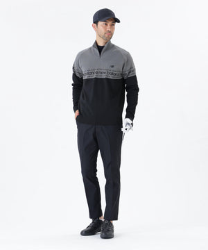 ロゴライン 軽量 ハーフジップ スタンド ニット プルオーバー (MENS)