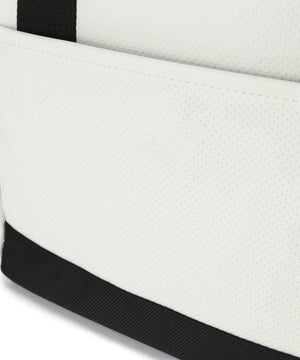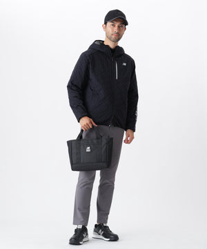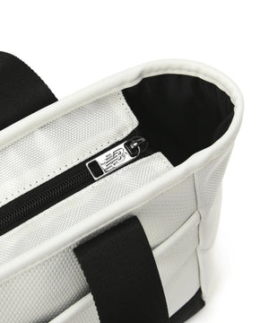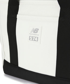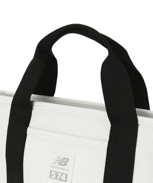 コンパクトなスタイルと実用性を両立したカートバッグ。ドットエンボス加工を施した凹凸ある表情が特徴のシンセティックレザーを使用した品のある仕上がりです。部分的にハードオックス素材を使用することで形状をキープ。開閉部は中身がしっかり守れるファスナー仕様を採用し、ラウンド中の小物整理に便利なポケットを完備し機能性も充実しています。フロント部分にはボックスロゴ・エンボスアップリケを、ファスナー引手にはコードスライダーをイメージする等、随所にゴルフシューズ「574v4」のティテールを配置したスタイリッシュなデザインが魅力です。