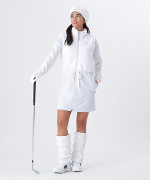 ボリュームと柔らかさを見直し、履きやすくアップデートしたショートレッグウォーマー。上品な光沢感が特徴のベロアの面と、ふんわりと温かなカールボアの面を採用したリバーシブル仕様で、気分やコーディネートに合わせて使い分けられるデザインです。スピンドルアジャスター付きでフィット感の調整もできる為、プレー中のズレを防ぎ、快適に足元を保温します。どちらの面も小さなロゴを配置し、シンプルながらも上品なアクセントをプラスしました。