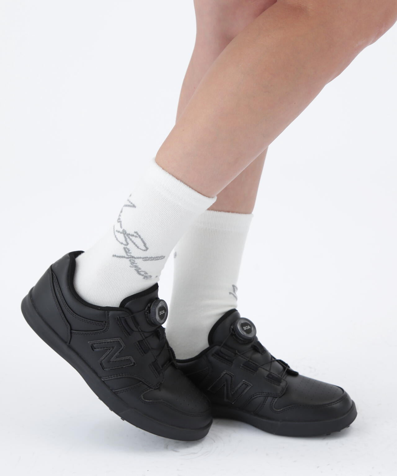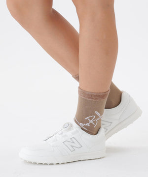 冷えやすい足元を温かく守ってくれる快適ミドルソックス。ニッティングをベースに通気性を高めるメッシュ編みや、クッション性のある足底パイル編みを採用し快適な履き心地を実現。また足底サポート構造がフィット感を高め、動きの多いゴルフシーンでもズレにくく安定感のある着用感をサポートします。保温性と速乾性を兼ね備えたダイナホットを使用している為足元は常に快適。サイドにはスクリプトロゴがアクセントとして映える女性らしい一足です。