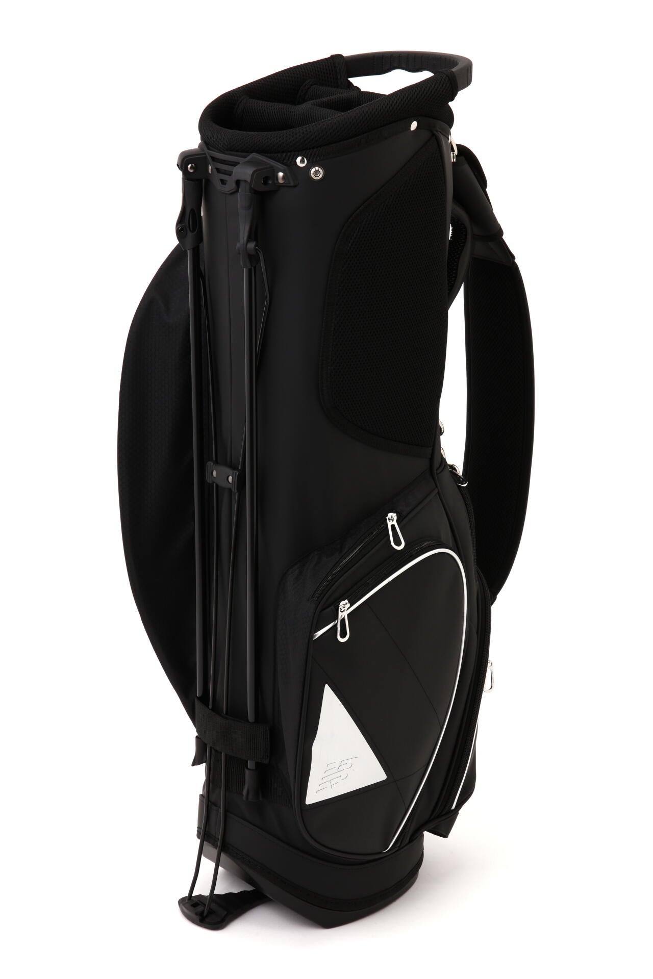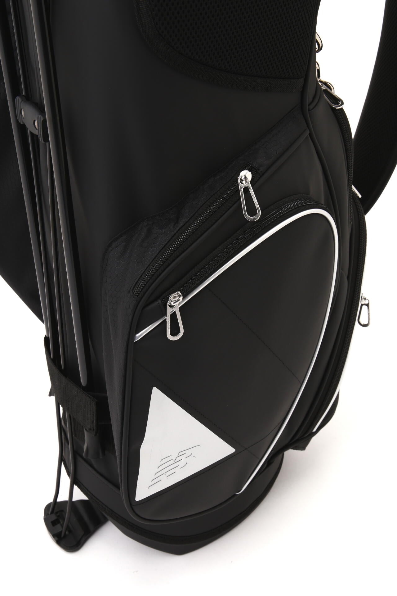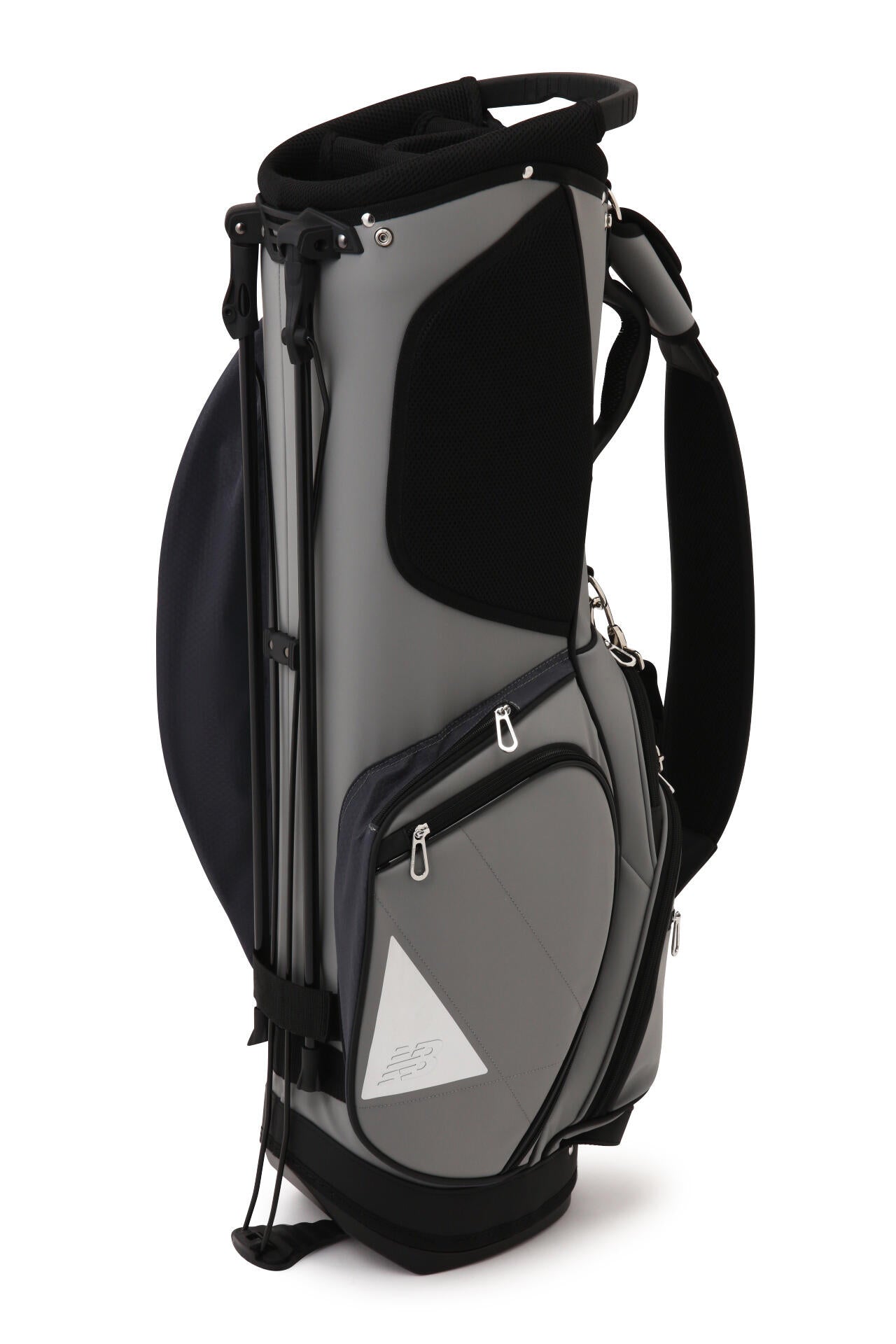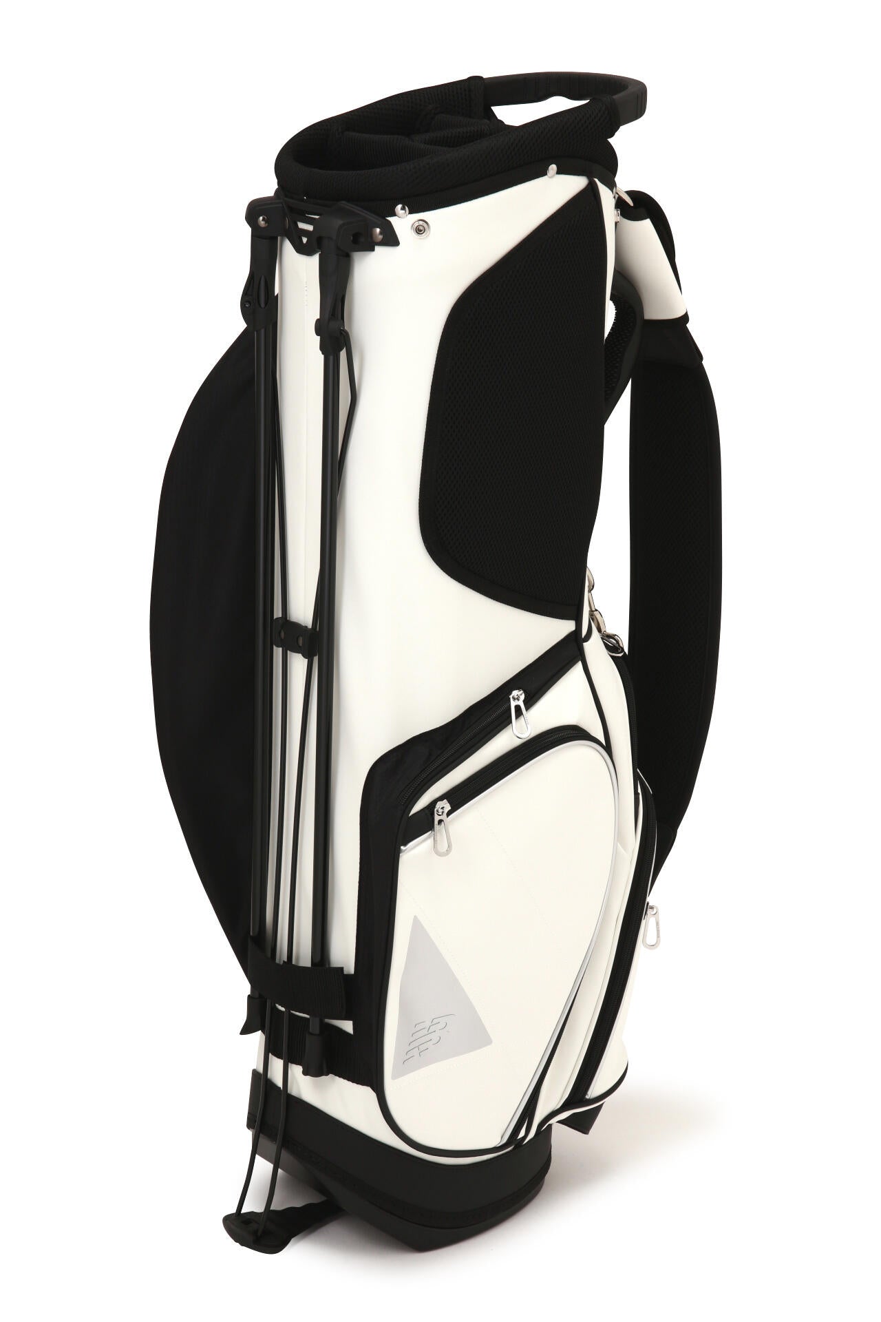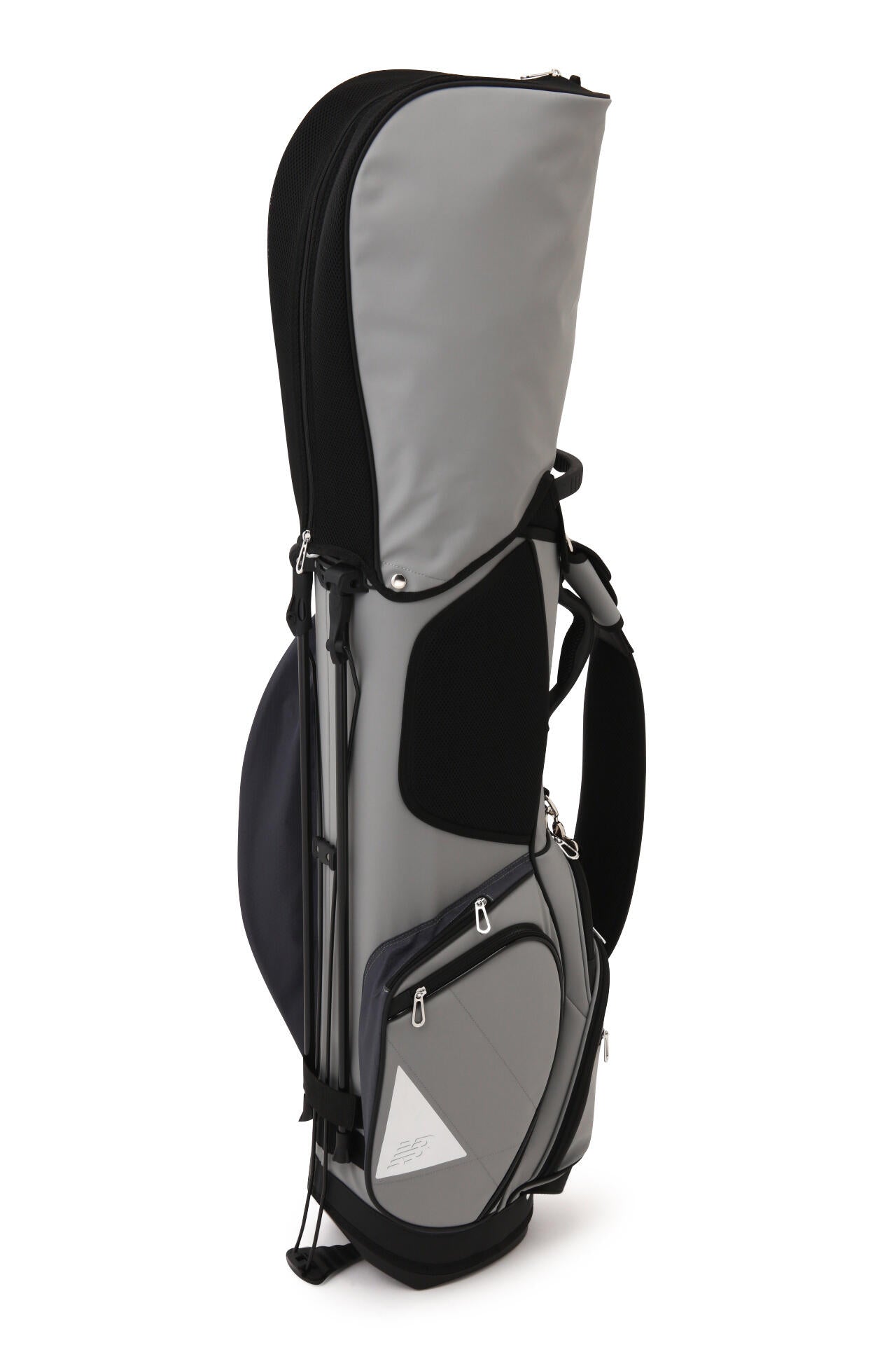 ゴルフシューズ1001v5のスタイリッシュなデザインにインスパイアされたハイブリット素材のキャディバッグ。綺麗なシンセティックレザーをメインに420Dハニカムを一部に使用して表情を出し、配色とロゴがアクセントのクールで高級感ある仕上がりです。機能的なスタンド型でハンドル付き口枠を採用。外ポケットを使用してゴルフシーンに必要な小物を一緒に持ち運ぶことが出来ます。あったら嬉しいショルダーベルトやネームプレート、ヘッドカバー付属。お揃い使いが出来る同シリーズの各種バッグ、クーラーバッグ、ボールホルダーを展開しています。