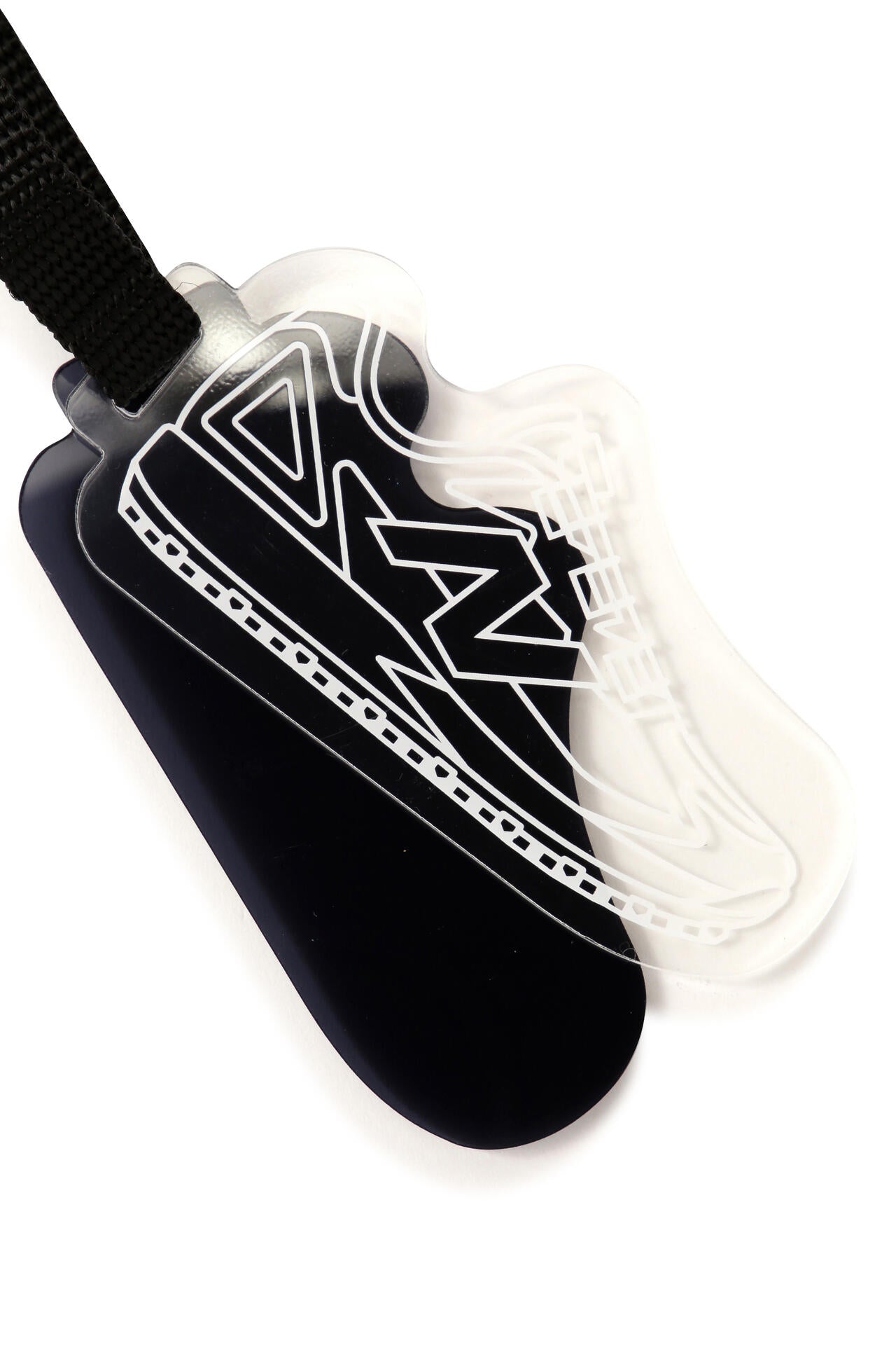 ブランドを代表するシューズモチーフのネームプレート。Nロゴをはじめシューズの細かなところも再現したこだわりのデザイン。カラーと透明アクリル製を重ねた2枚仕上げ。脱着パーツストラップ仕様でキャディバッグなどお好みの場所に装着してお使いいただけます。カラーは3色展開。男女問わず身に着けられるアイテムで、ちょっとした贈り物としても最適です。