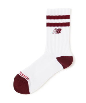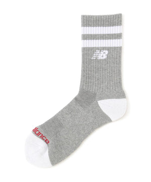 足元にスポーティーなアクセントをプラスできるミドルソックス。優しい風合いのコットン素材をベースに吸水速乾性のあるアクリル糸を混紡した、適度なボリュームとドライタッチな風合いが特徴。抗菌防臭を誇る「SEK」の採用や、足裏サポート機能&パイル編みによる衝撃吸収設計が長時間の歩行も快適にサポートします。シューズから程よくチラ見せするミドル丈で、二本の配色ラインとNBロゴのコラボがアクセントに活躍します。また脱いでも楽しい、配色とアクセントカラーで配したnewbalanceロゴにも注目です