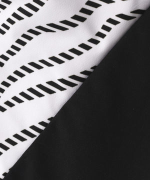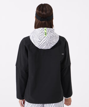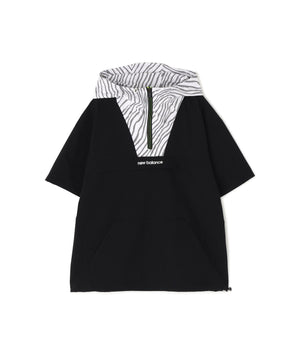 抜け感のあるスポーティースタイルを演出する2WAYハーフジップフーディー。しなやかなで動きやすい着心地を実現し、程よくゆとりのあるリラックスシルエットが、身体のラインを拾いにくく自然体で着用できます。軽やかな素材感に4wayストレッチ性をプラスし、アクティブなシーンでも快適さをキープ。また撥水性とUVカット機能を備え、天候や日差しの変化にも安心です。袖脱着仕様で半袖にも対応し、温度調整がしやすく、着こなしの幅も広がります。ストライプ調のゼブラ柄が程よい存在感とスポーティな印象を演出します。