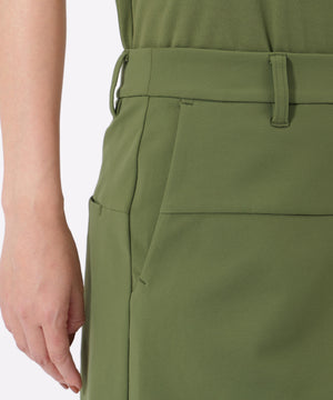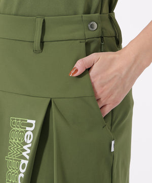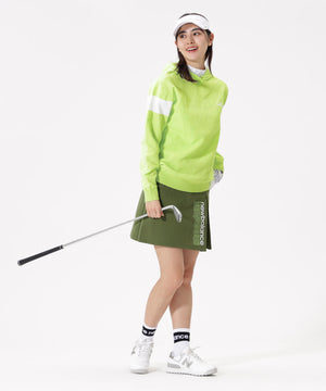 上品な表情と快適な穿き心地を両立したスウェットスカート。表面はなめらかで上質感があり、裏面は優しい肌当たり。高いストレッチ性で動きやすさを確保しながら、吸汗速乾性とUVカット機能を備え、ゴルフシーンでも快適な着用感を実現します。左前にはプリーツとロゴをあしらい、シンプルな中にデザイン性をプラス。ファスナー仕様により着脱もしやすく、スッキリとしたシルエットに仕上げました。