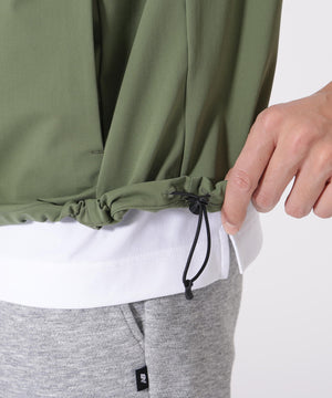 アクティブに映えるディテールを備えたスタンドジッププルオーバー。しなやかで上品なトリコット素材を使用。優れたストレッチ性で動きやすく、高い吸汗速乾性がサラリとした風合いをキープする、快適な着心地です。ハーフスリーブとスタンドジップ仕様で、スポーティかつ軽快な印象に。裾にはドローストリングを配し、キュッと絞ることでシルエットの変化を楽しめます。一枚着はもちろんインナーとの相性も抜群。ポケット付きで実用性も兼ね備えた、ゴルフからデイリーまで活躍するアイテムです。
