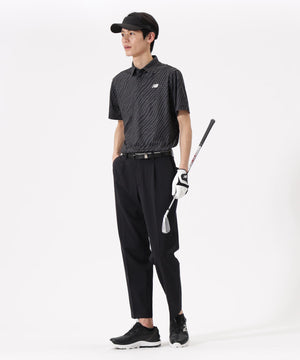 総柄でも上品に着こなせる半袖カラーシャツ。通気性に優れたメッシュジャージーを使用し、ストレッチ性、吸汗速乾性、UVカット機能を備えたゴルフシーンに最適な機能素材です。動きのあるストライプゼブラプリント柄を全面に施しながらも、落ち着いた配色と繊細なライン構成により、総柄でも派手になりすぎないオシャレなデザインに仕上がっています。機能性とデザイン性のバランスにこだわった、スタイリングの幅を広げてくれるアイテムです。