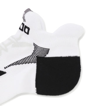 足元で映えるアンクルソックス。新作ゴルフシューズ「2500v5」デザインエッセンスを落とし込み、コーディネートにさりげない統一感をもたらし、シューズとの相性も抜群です。素材には「SEK」抗菌防臭加工を施し、プレー中も快適を提供。足底はクッション性のあるパイル仕様で、衝撃を和らげながら安定感を高めています。さらに足底サポートとダブルヒールアップ構造により、フィット感とホールド感を強化。デザイン性と機能性を兼ね備えた、ゴルフシーンに頼れる一足です。