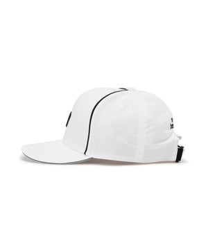 ラウンド中の利便性にも配慮した機能的なブリムキャップ。程よくカーブを描いたブリムが、スポーティでバランスの取れた印象を演出。本体には軽量で耐久性に優れたミニリップストップ素材を採用し、吸汗速乾のあるスベリ部がサラリとした快適な着用感を保ちます。サイズアジャスターでフィット感の調整も可能。ブランドロゴやラインがアクセント。マグネット式マーカー付きで、ツバ先に装着可能。ゴルファーの為に考えられたデザイン性と実用性を兼ね備えたアイテムです。