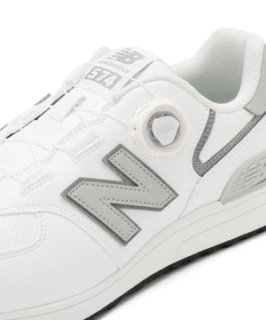 トッププロから好評の日本人の足にフィットするラストを採用した人気の「574 」スパイクレスモデルがv4にアップデート。ゴルフに最適化したグリップ性の高いラギッド意匠のアウトソール、捻れを抑えるナイロンシャンク、安定性を高めるCRがゴルフプレーをサポート。さらにクッション性を高めたインソールにより快適性アップ。