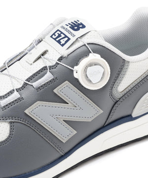 トッププロから好評の日本人の足にフィットするラストを採用した人気の「574 」スパイクレスBoaモデルがv4にアップデート。ゴルフに最適化したグリップ性の高いラギッド意匠のアウトソール、捻れを抑えるナイロンシャンク、安定性を高めるCRがゴルフプレーをサポート。さらにクッション性を高めたインソールにより快適性アップ。