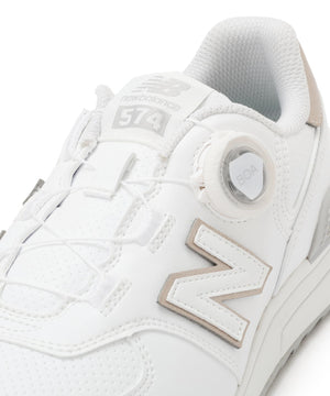 トッププロから好評の日本人の足にフィットするラストを採用した人気の「574 」スパイクレスBoaモデルがv4にアップデート。ゴルフに最適化したグリップ性の高いラギッド意匠のアウトソール、捻れを抑えるナイロンシャンク、安定性を高めるCRがゴルフプレーをサポート。さらにクッション性を高めたインソールにより快適性アップ。