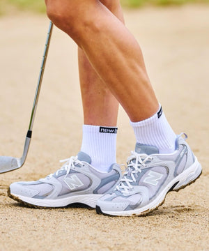 ライフスタイル「530」をゴルフシューズ向けにアレンジしたスパイクレスモデルのシーズナルカラーが登場。レイヤーを重ねたアッパーとボリューム感のあるソールがプレー中の足元をスタイリッシュに彩りつつ、ゴルフ向けに設計されたソールがゴルフに最適なクッション性とグリップ性を発揮し、プレーをしっかりサポート。