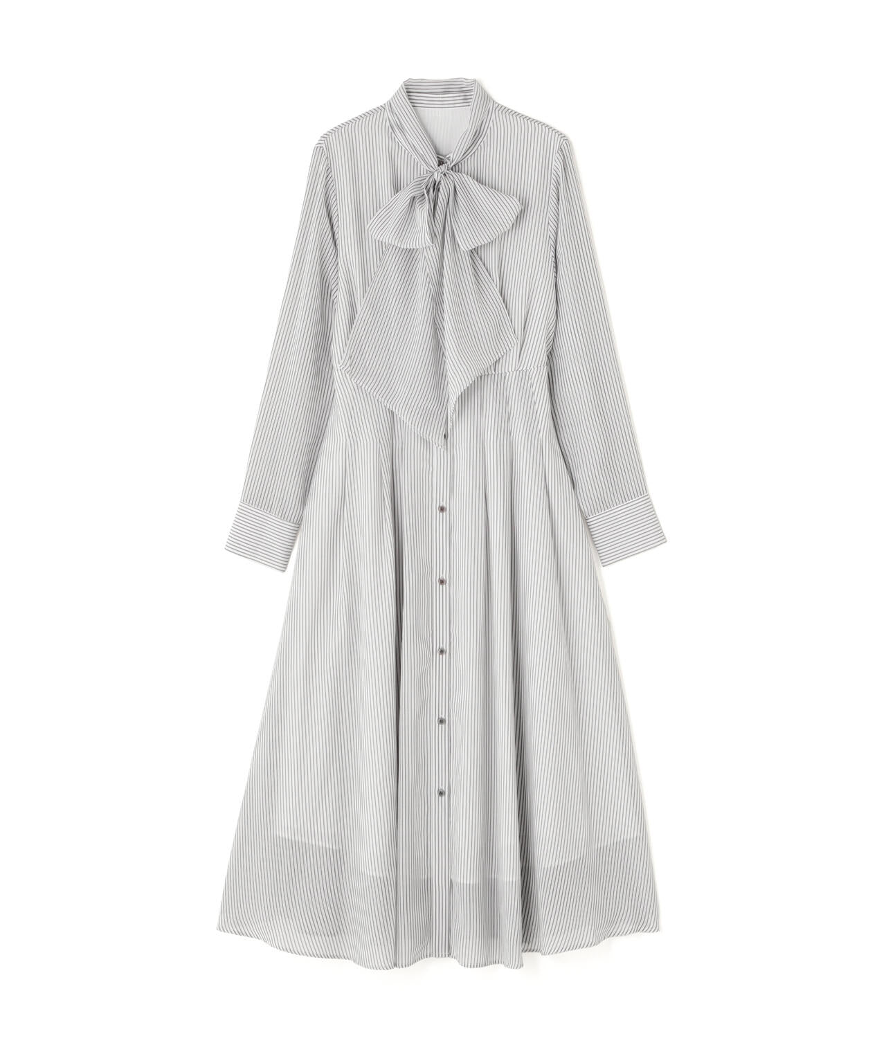 シアーな素材に細ピッチのストライプが入った涼し気なデザイン。エアリーな素材感で長め丈でも軽やかな印象です。