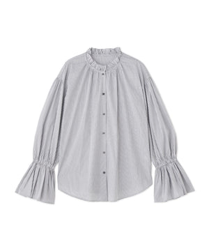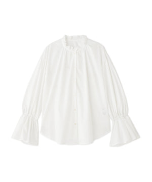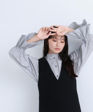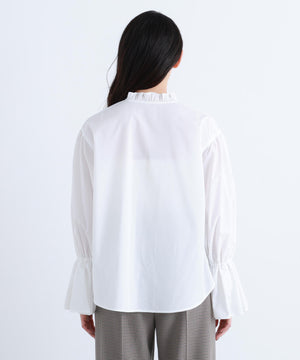 程よいハリのあるシャツ地素材を使用。フリルがキレイに引き立つ素材です。