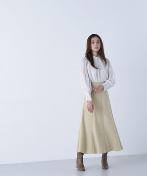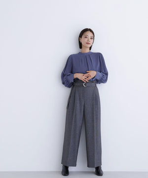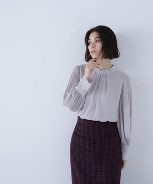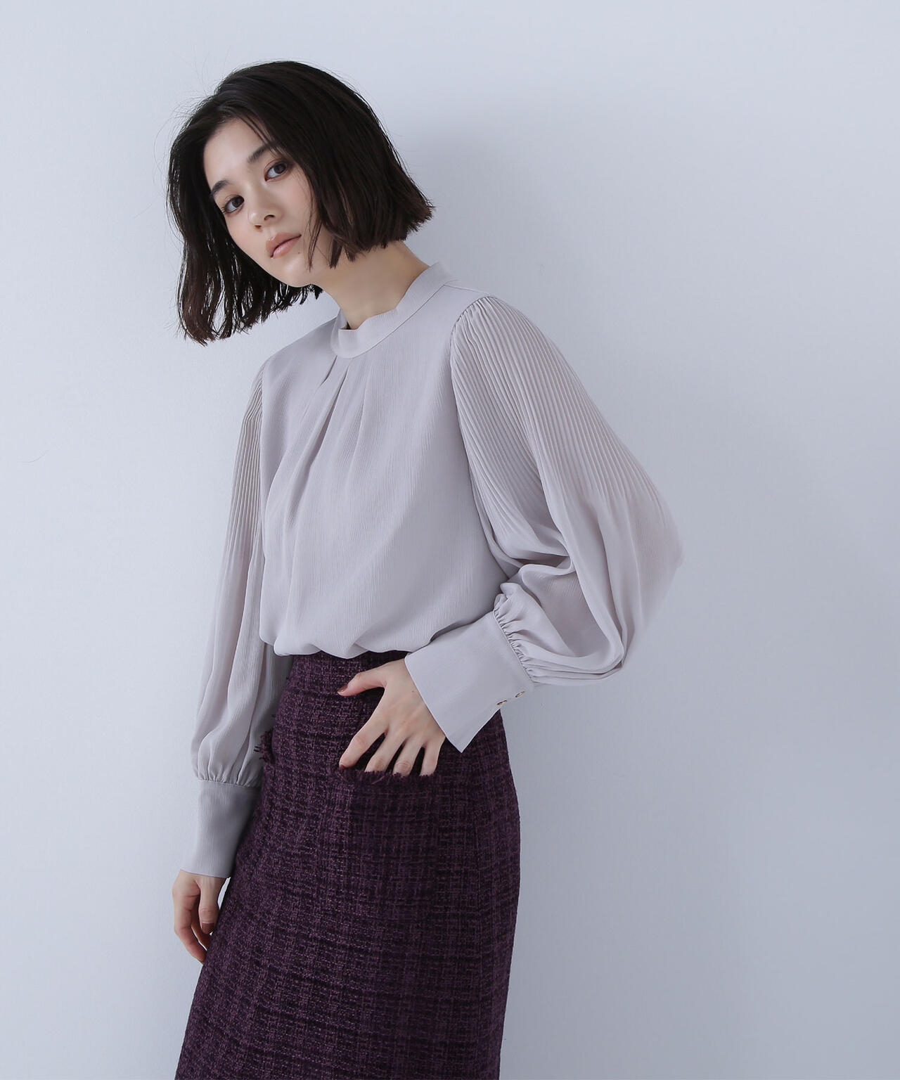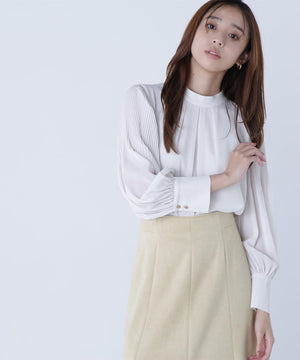NBB定番人気の楊柳プリーツスリーブブラウスが今年も再登場!きちんと感のある、通勤スタイルにぴったりなハイネックデザインに、袖はプリーツで華奢見えしながら、ふんわりとしたボリューム感を出した華やかな一枚。フロントにはタックが入り、すっきりときちんと見えを両立します。スカートでもパンツでも相性がよく、着まわし力は抜群です。