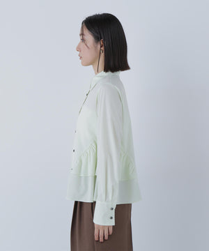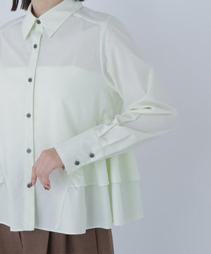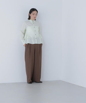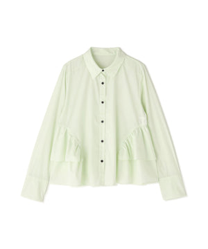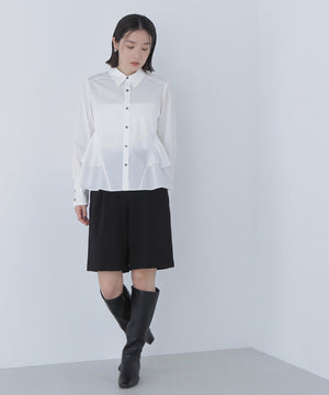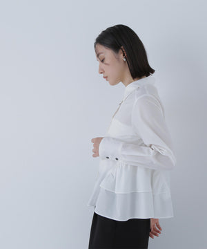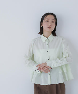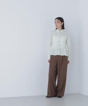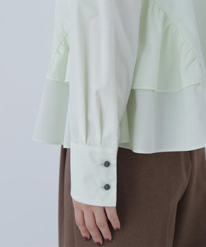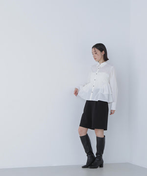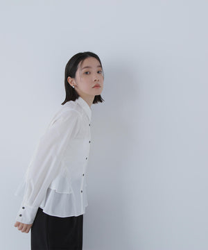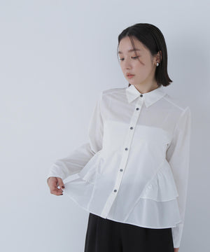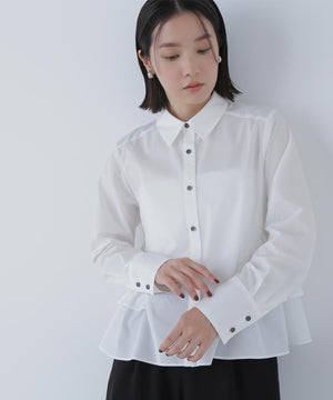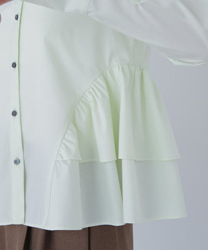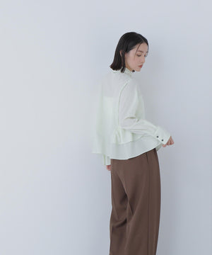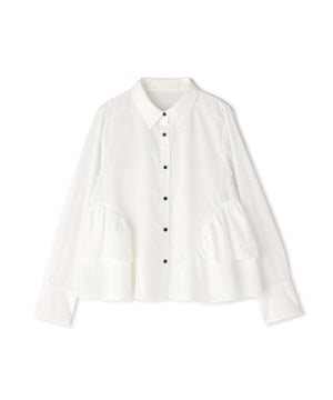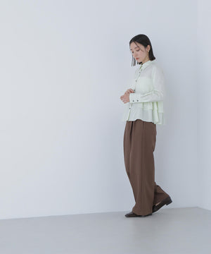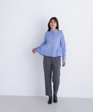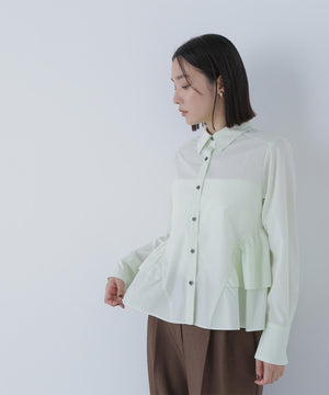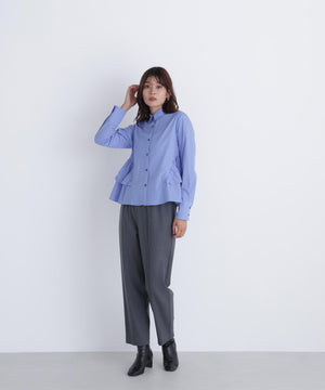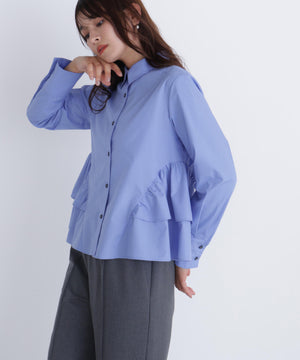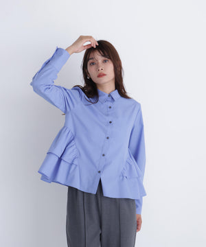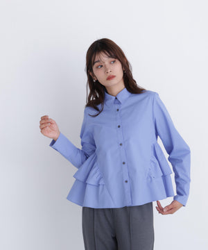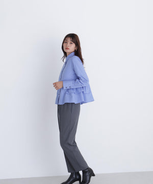 サイドフリルが愛らしいブラウス。ふんわりとしたシルエットでお腹まわりをカバーしてくれます。カーディガンを羽織れば、裾から見えるフリルがアクセントに。配色ボタンがカジュアルでこなれた雰囲気を叶えます。パンツと合わせたコーディネートがおすすめです。