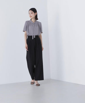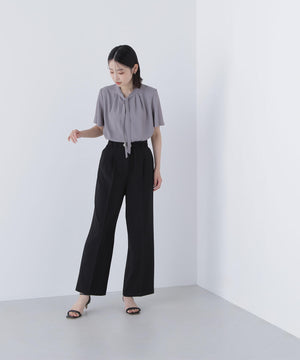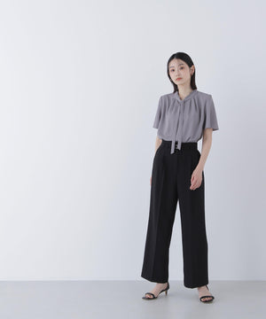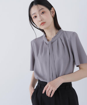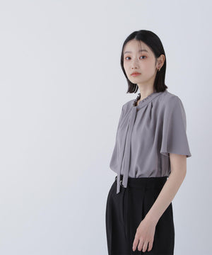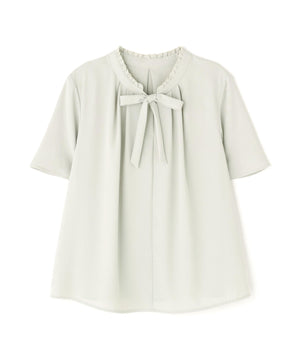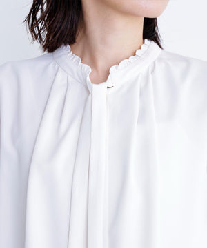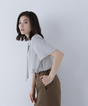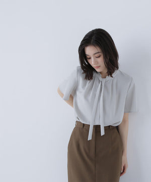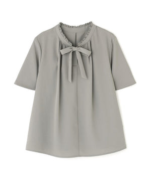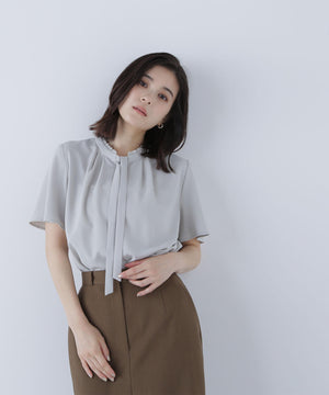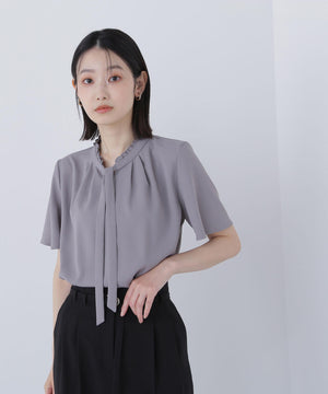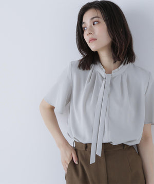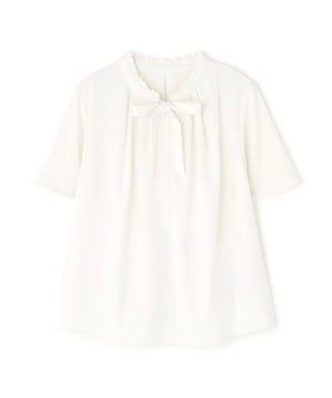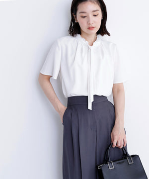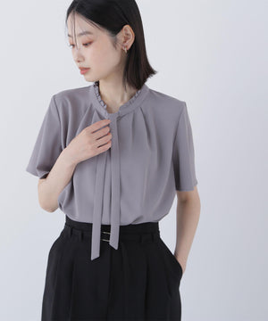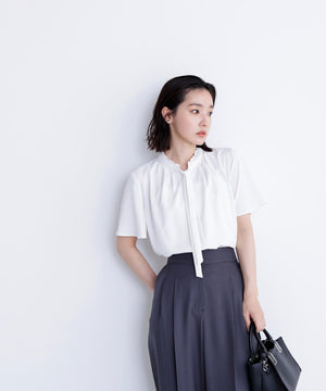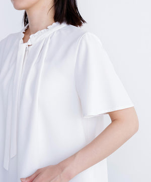 フリルネックナローボウタイブラウス