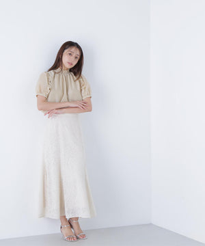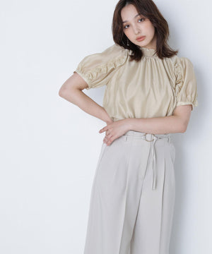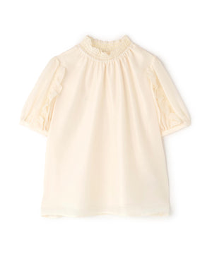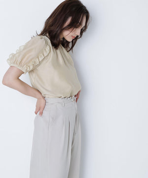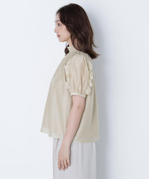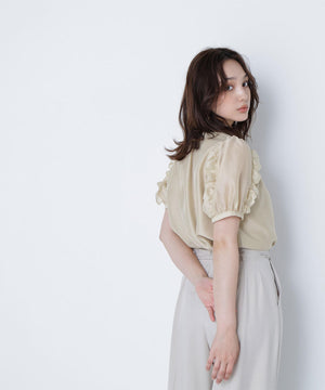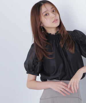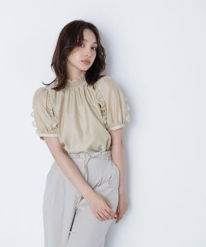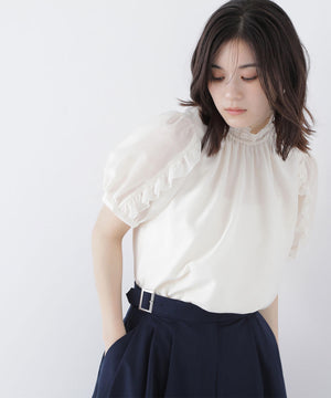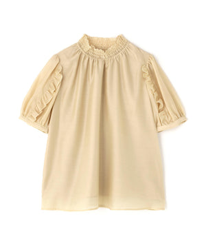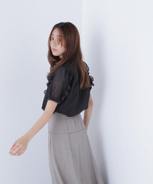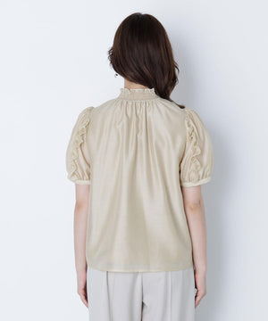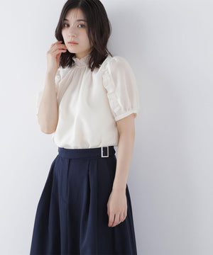 シャーリングネックフリルブラウス