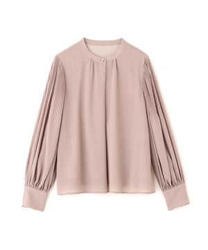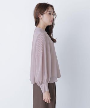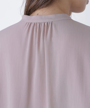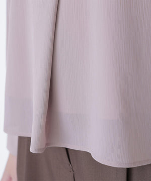 縦目に表情のある楊柳素材を使用。軽くて柔らかい素材感です。袖にはクリスタルプリーツを施しています。