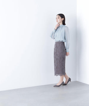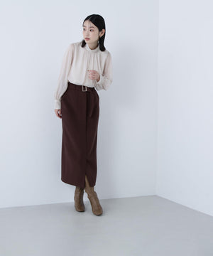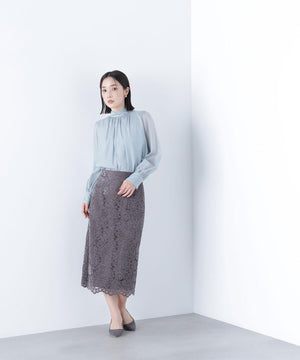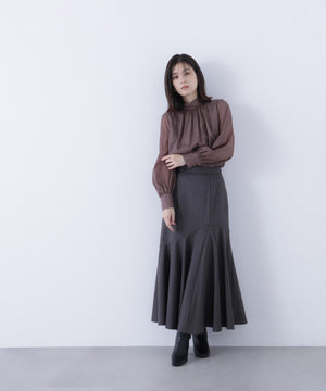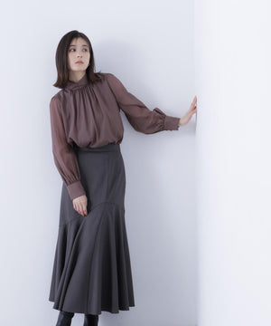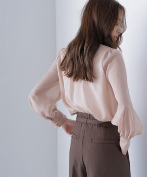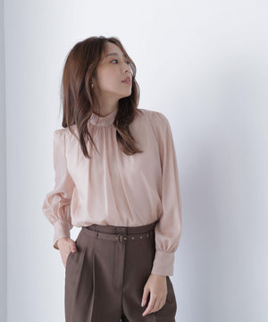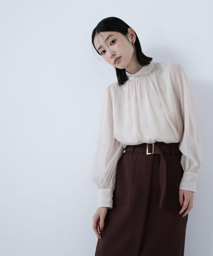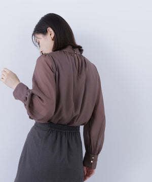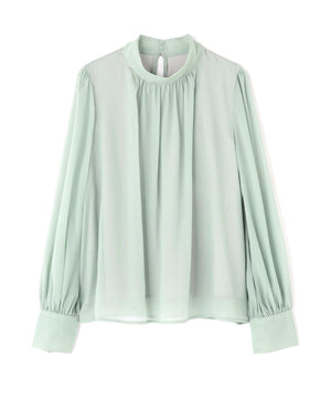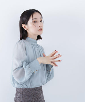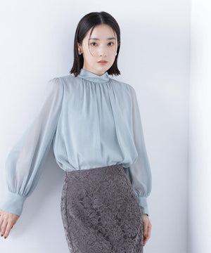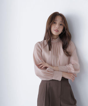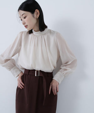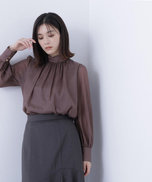 ハイネックボリュームシアーブラウス