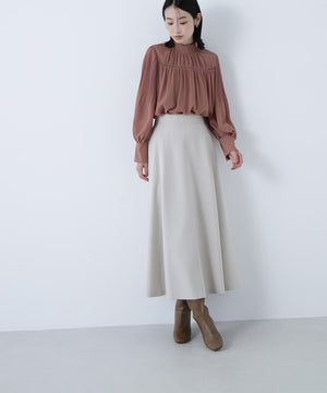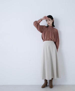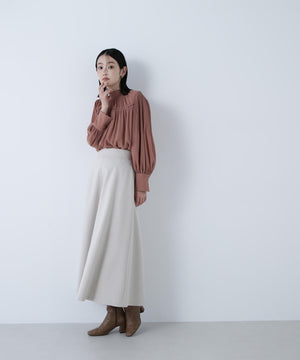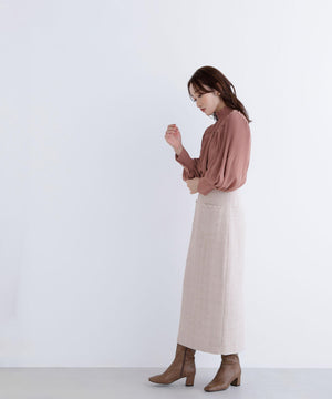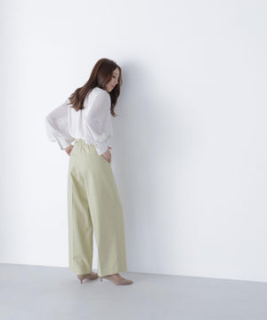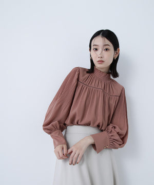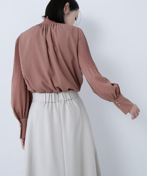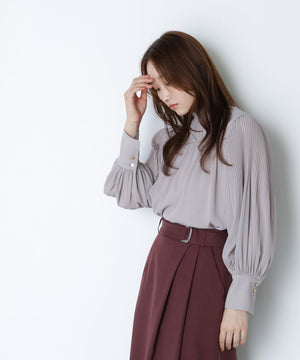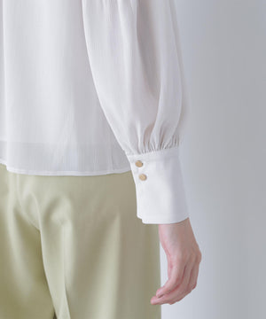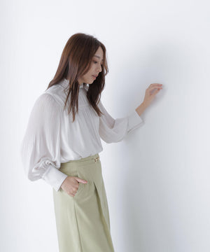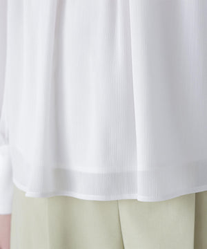 縦目に表情のある楊柳素材を使用。軽くやわらかな素材感です。袖にはクリスタルプリーツを施しています。