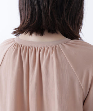 軽くて柔らかい風合いの楊柳素材を使用。生地に透け感はありますが、袖の切替部分まで裏地が付いているためインナーの透けを気にしないで着ていただけます。